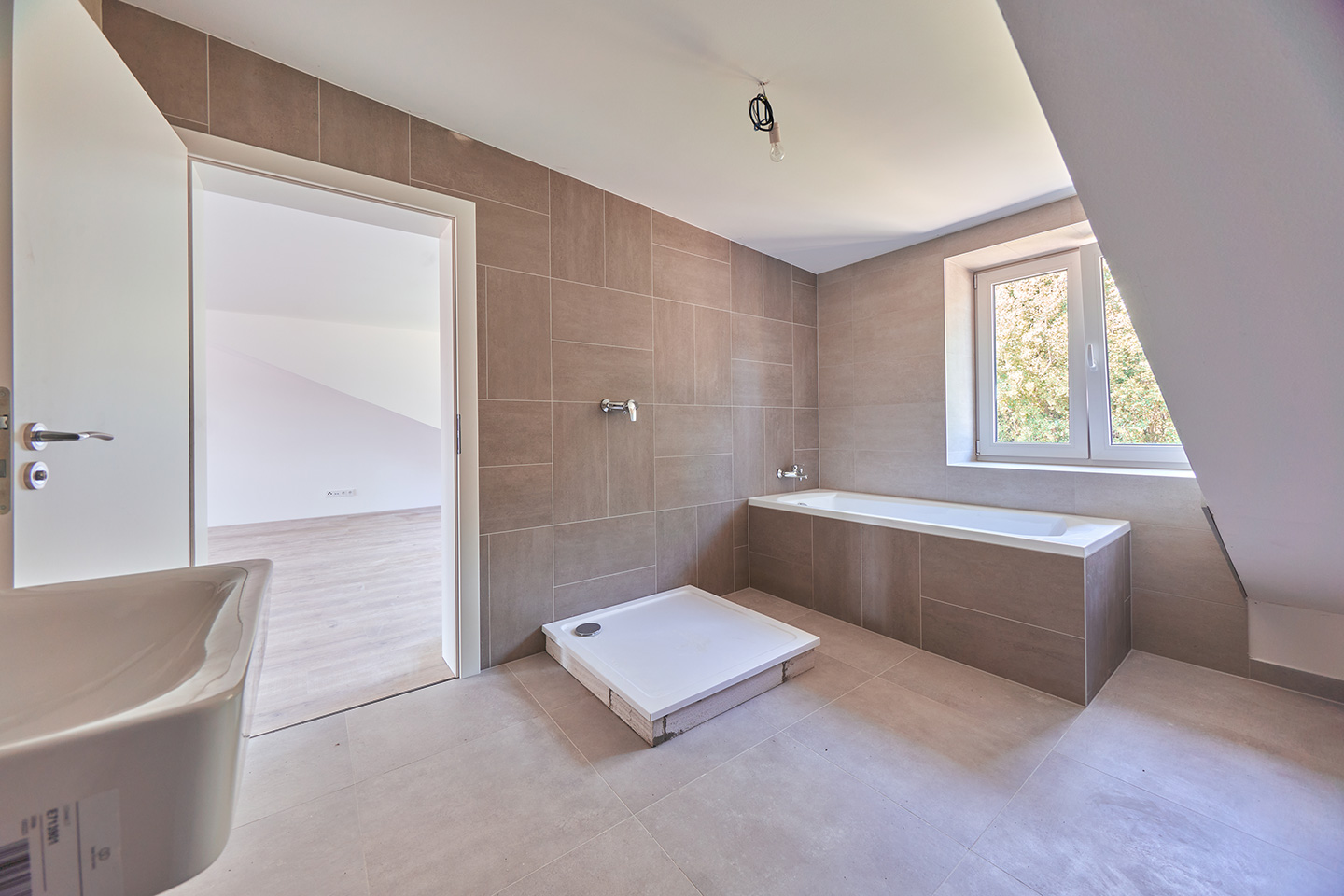 Koupelna s vanou má výměru 12,7m2, samostatné WC 1,6m2.