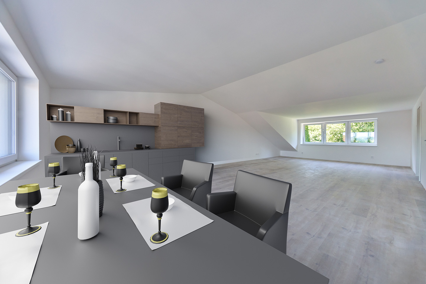 Byt si můžete prohlédnout i v panoramatické galerii zhotovené těsně před dokončním.